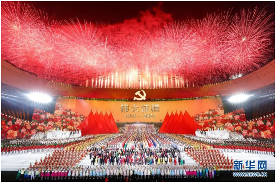 6月28日晚,庆祝中国共产党成立100周年文艺演出《伟大征程》在国家体育场盛大举行。新华社记者 黄敬文 摄
