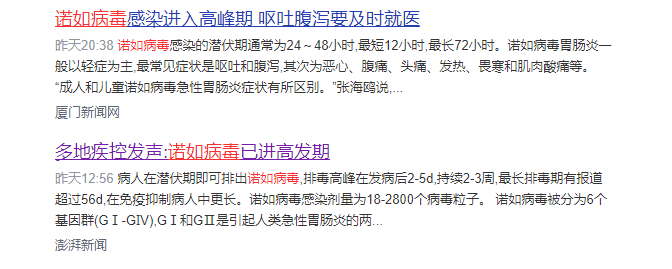 诺如病毒感染的潜伏期比较短,通常在12~48小时,一般不超过96小时。