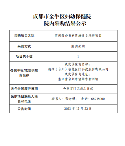 成都市金牛区妇幼保健院 院内采购结果公示(两癌筛查智能终端设备)