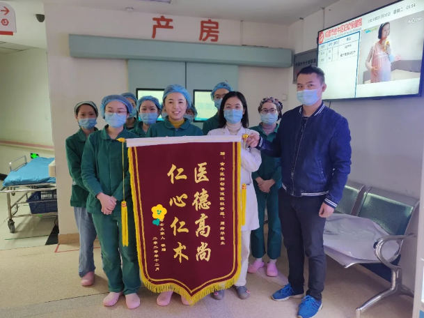 39+5周,患者因胎膜早破入院,入院后周玲华副主任医师带领产房团队给予了详细的顺产方案及急诊剖宫产准备工作。因患者胎膜早破,未临产,需要引产,由于患者本来为瘢痕子宫,瘢痕子宫缩宫素引产的风险高,技术难度大,周玲华副主任医师则全程带队,产房的医护团队精心陪护,但患者在活跃期出现了先兆子宫破裂症状:血尿,胎心异常等,虽已过下班时间,但患者的生命安全高于一切,周玲华医师及医护团队迅速启动院内急诊剖宫产预案,争分夺秒为患者做了剖宫产术,术中发现患者严重盆腔粘连,大大增加了手术难度,凭借多年处理术中突发状况的经验,最终手术顺利,母婴安全。术后产妈身体恢复良好,其家人送来了感谢的锦旗。